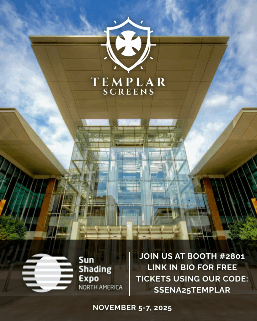 Join us at Sun Shading Expo 2025 in booth 2801. Use our promo code SSENA25TEMPLAR for FREE admission!